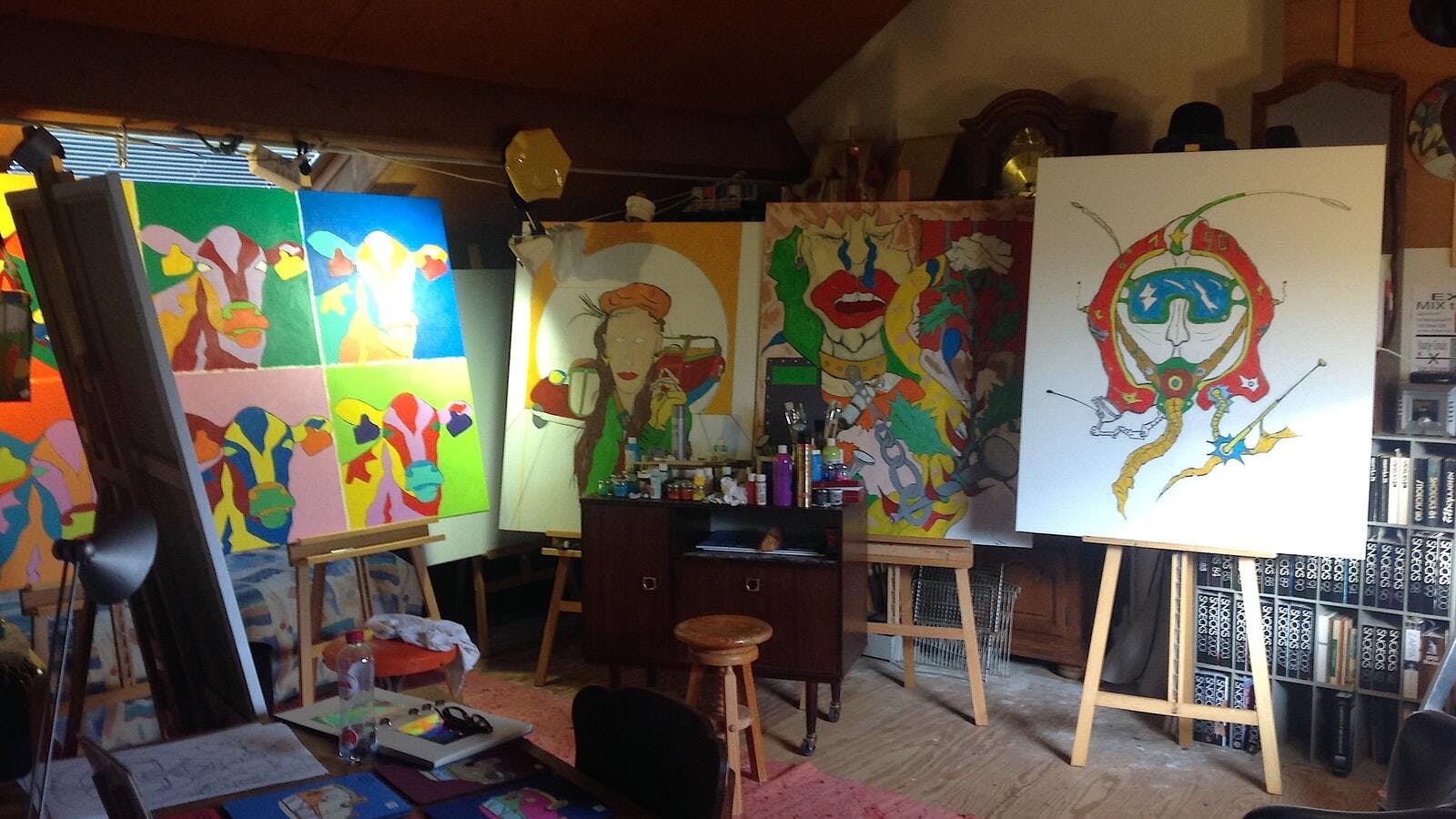 Bewust wil hij zich niet vastpinnen op één stijl en vergelijkt zijn kunst met een speeltuin. Kinderlijke vrijheid = onbeperktheid met een ‘joie de vivre’.
