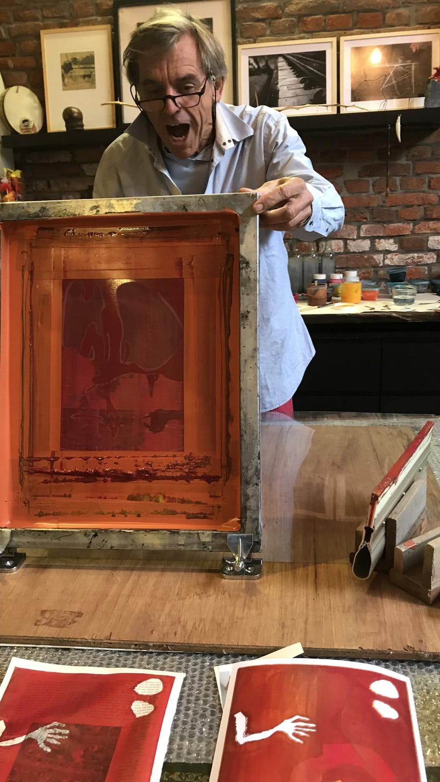 Het is voor mij een AVONTUUR. Ik hou wel van MULTIMEDIA en ECLECTISCH. Zo spring ik van foto’s, video, tekeningen, zeefdruk, schilderen, kleien, houtdruk en andere vormen door elkaar om te maken wat ik denk. Op foto’s wordt getekend of gedrukt. Werken die me op het eerste gezicht niet boeien leg ik aan de kant en kom er dan later op terug. Het wordt dan soms ook iets helemaal anders. Een plat vlak wordt een huisje. Dat huisje krijgt poten en dan wordt ik er vrolijk van.