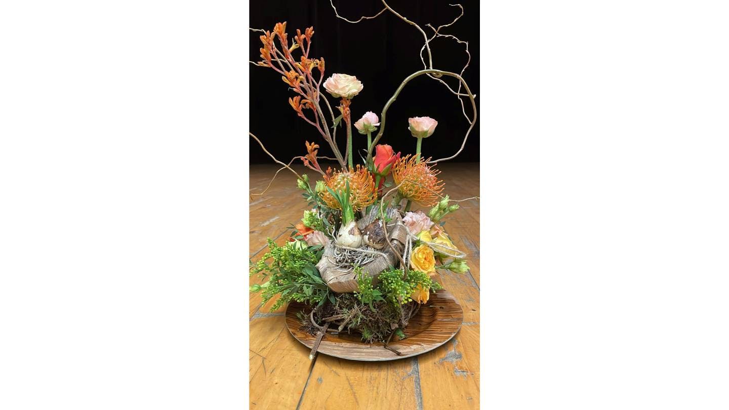 Onder begeleiding van Leslie van De Serre maken we een mooi bloemstuk.