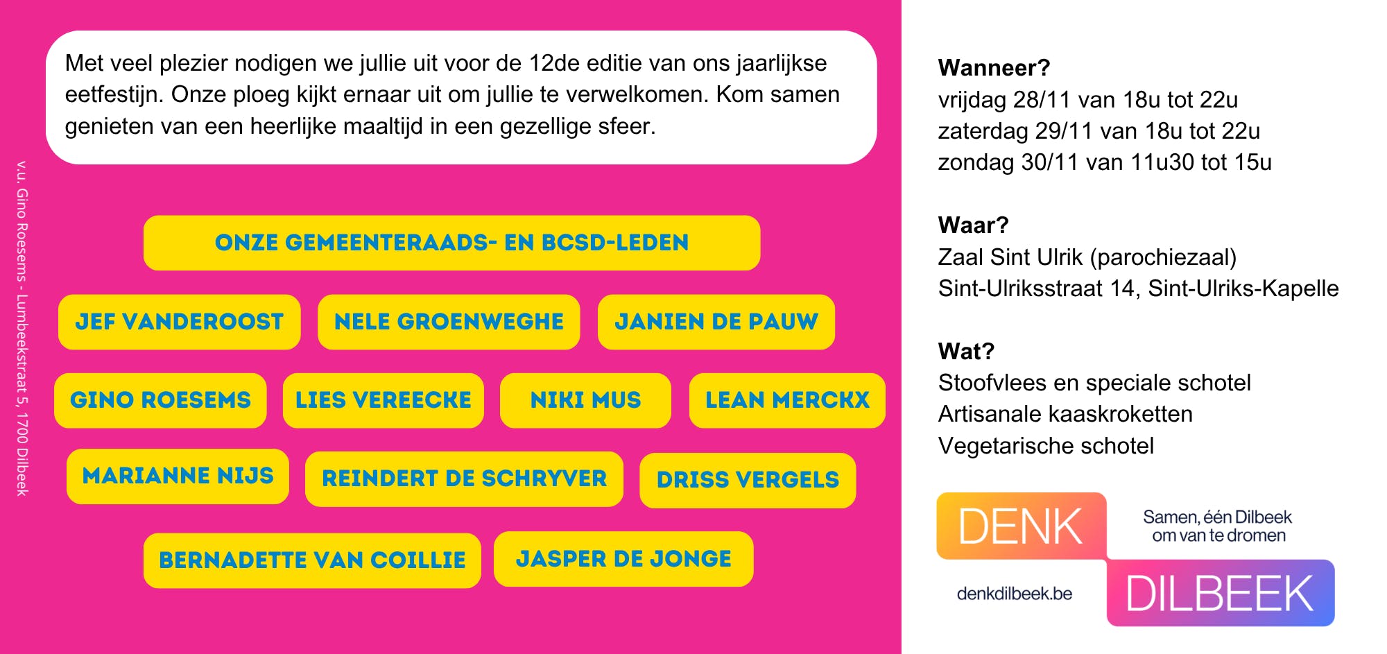 Eetfestijn gemeenteraadslid Gino Roesems - Denk Dilbeek Eet- of drankfestijn Eetfestijn gemeenteraadslid Gino Roesems - Denk Dilbeek © Denk Dilbeek Eetfestijn gemeenteraadslid Gino Roesems - Denk Dilbeek © Denk Dilbeek