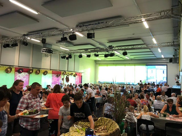 In de gekende formule: oesters, voorgerechten,sappige steaks van topkwaliteit, gefrituurde scampi's met ons eigen korstje, gebak, ijs en noem maar op. Apero met en zonder tanden, bier (ook alcoholvrij en toch lekker), uitstekende, geselecteerde wijnen. Bubbels. Is er een leukere manier om het plaatselijke verenigingsleven te helpen en de muziekbeleving te stimuleren?